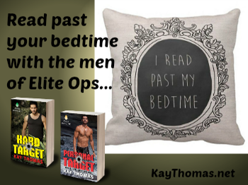 Do you read past your bedtime? Enter my Read Past Your Bedtime Contest and win this custom cotton and burlap pillow cover plus the first two books in the Elite Ops series. You’ll be ready to “Meet Hollywood” in June with the release of EASY TARGET— Elite Ops 3. The Rafflecopter giveaway runs till 11:59 pm on Monday, May 18th. Winners will be contacted by email and announced on Facebook and Twitter on Tuesday, May 19th. Good luck and thanks for entering!